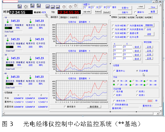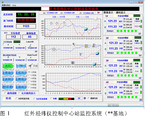 為國家某兵器試驗基地研發(fā)的光測控制中心站(中心站遠(yuǎn)程控制4臺紅外光測儀設(shè)備,完成各種飛彈科學(xué)光測任務(wù))