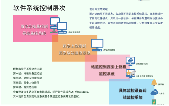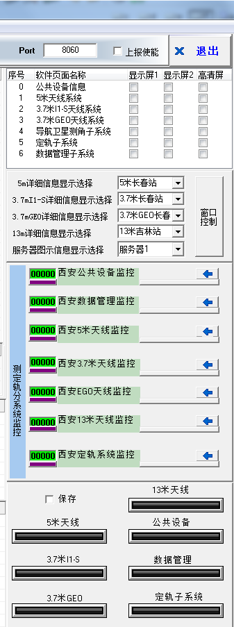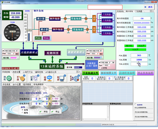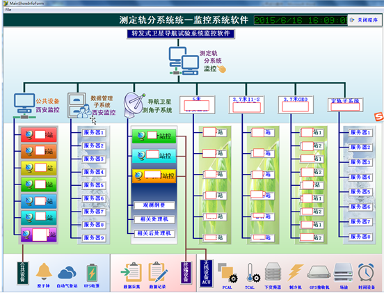 本監(jiān)控系統(tǒng)由幾十臺天線系統(tǒng)及其它有關的天文系統(tǒng)設備組成,設計4層監(jiān)控系統(tǒng),從設備級到各站級控制系統(tǒng),完成射電源及衛(wèi)星的自動跟蹤任務,完成對各站及設備的監(jiān)控任務等等??偙O(jiān)控系統(tǒng)應具備分屏顯示功能,其中任一屏內容可以控制,有一屏為高清晰度大屏(HDMI接口)。